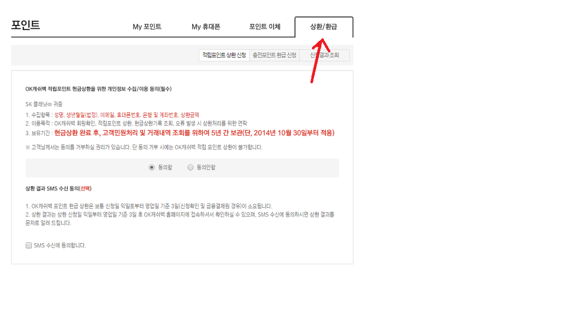 OK캐쉬백 포인트 현금전환 방법